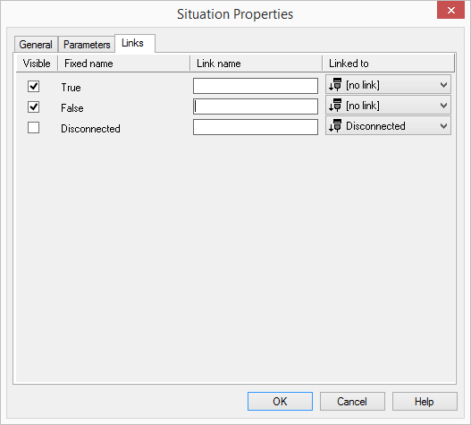 | The "Visible" column is only used to define the visibility of the links in the script window. This setting helps to maintain the clarity of the script. You cannot remove outputs, i.e. the connections must be kept, otherwise an error will occur in the script. |