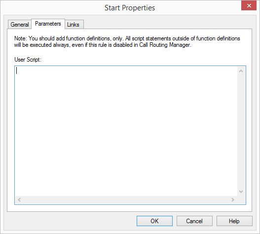 You have entered "...if not logged on to SwyxServer" as a parameter. If you are then called and are not logged on, then the branch of the script, which is connected to the output "True", will be processed. Otherwise, the branch "False" will be processed.
