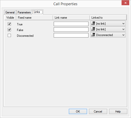 | The "Visible" column is only used to define the visibility of the links in the script window. This setting helps to maintain the clarity of the script. You cannot remove outputs, i.e. the connections must be kept, otherwise an error will occur in the script. |