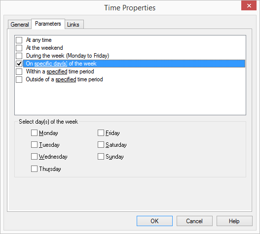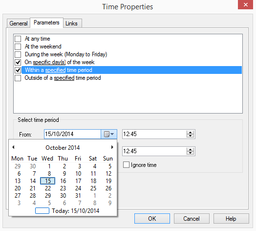 specified time period2 If you select "Within a specified time period" from the selection list, in the lower part of the tab you can define in detail the dates as well as periods within the time of day.