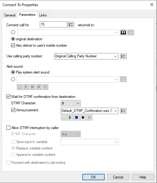 8 Activate the "Announcement" option if you want an announcement to be played before the DTMF confirmation. You can use the standard announcement "Default_DTMF_Confirmation.wav" or create your own announcement.