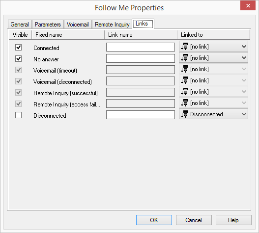 In the last column "Linked to" you see which block input this output is connected to. Here you have the option of selecting a link from a select list, which contains all available blocks.