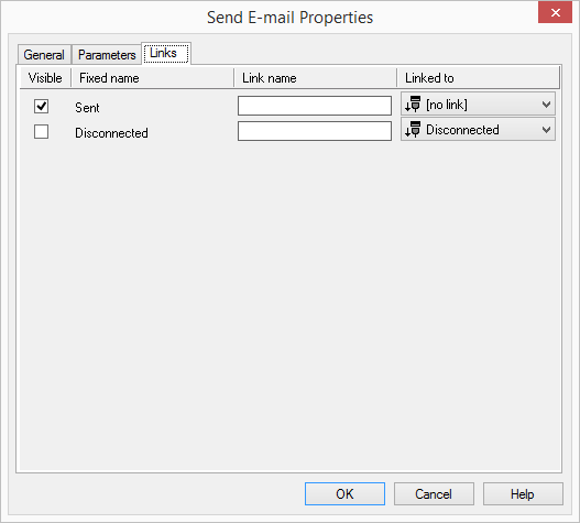 | The "Visible" column is only used to define the visibility of the links in the script window. This setting helps to maintain the clarity of the script. You cannot remove outputs, i.e. the connections must be kept, otherwise an error will occur in the script. |