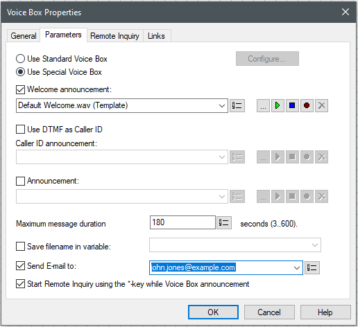1 Specify whether you want to use your normal Standard Voice Box or whether you want to define a special Voice Box (e.g. with a different announcement) for this action.