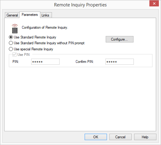 If you would like to use the Standard Remote Inquiry, activate this option. It is still possible to change the Standard Remote Inquiry here. To do so, click on "Configure…".