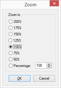 You can enlarge or reduce the area displayed in the script window. To do this, you have the choice of using pre-defined percent values or of using a value that you define.