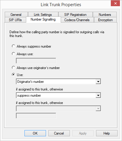 Here you specify whether, and how, the numbers for outgoing calls via this trunk should be signaled.