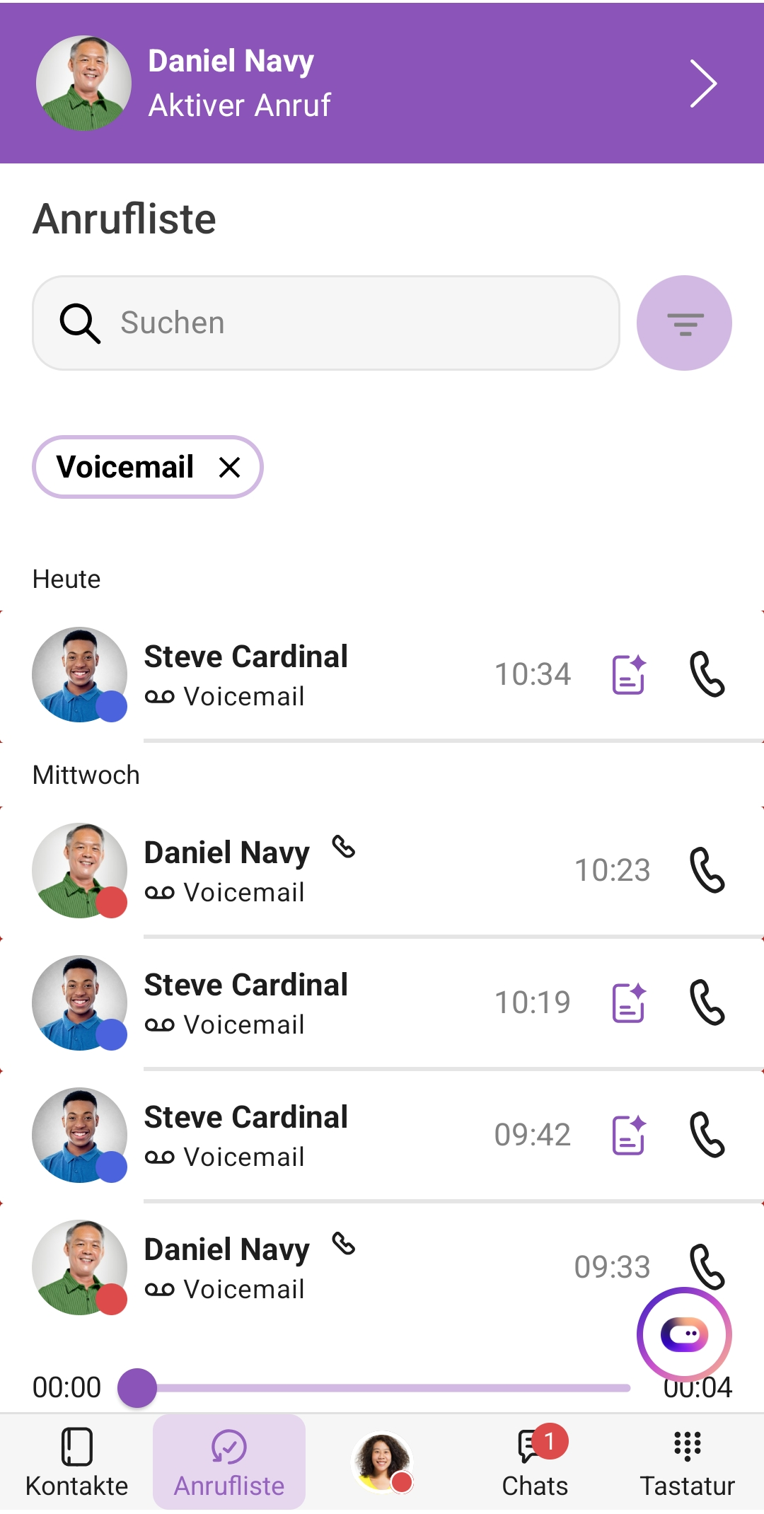 2 Tippen Sie auf die Kopfzeile Aktiver Anruf.