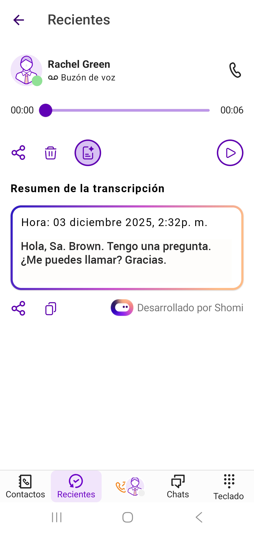 3 En la ventana del mensaje de voz, pulsa en