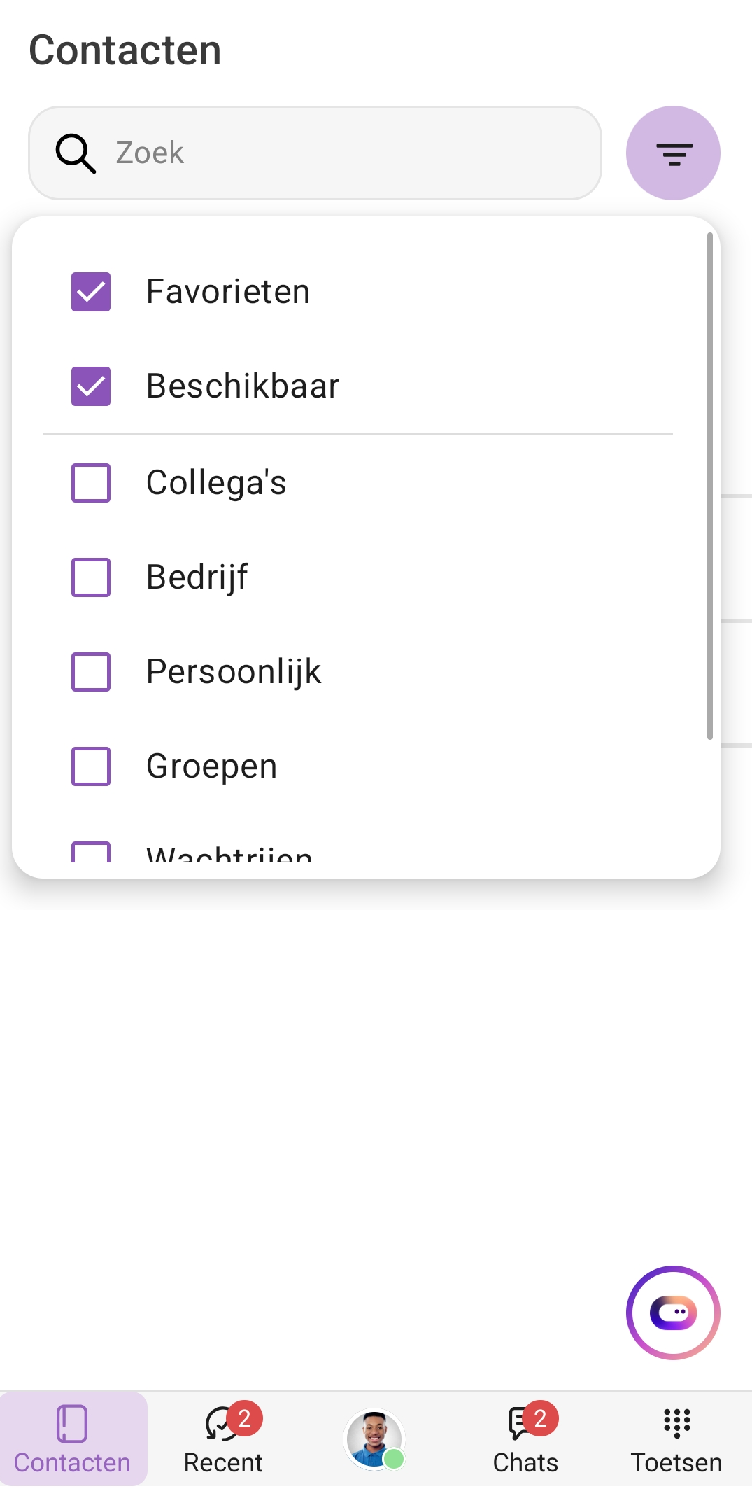 Beschikbaar | Contacten die online zijn |