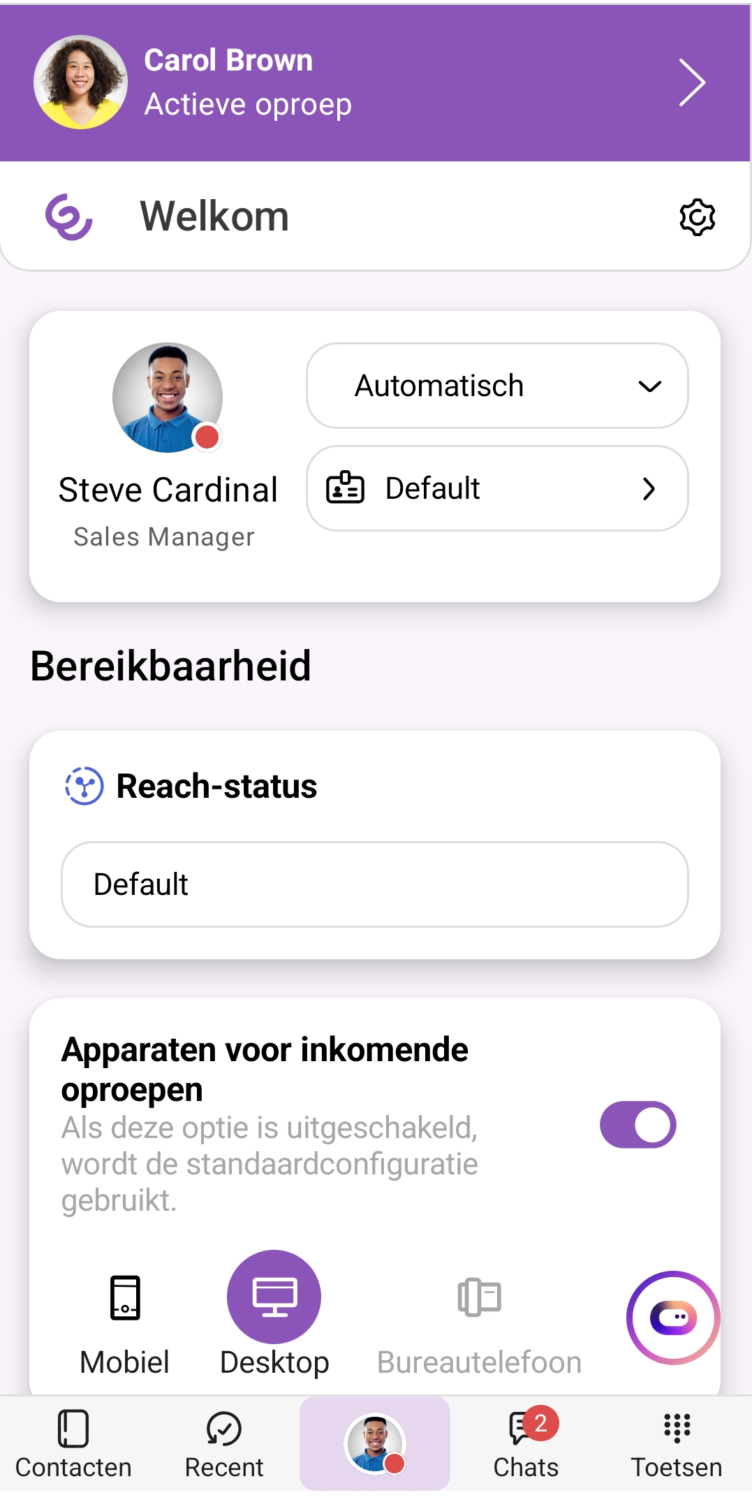Ben je in gesprek via Enreach Contact Desktop, maar moet je het gesprek onderweg voortzetten? Geen probleem - je kunt het gesprek eenvoudig doorschakelen naar je smartphone.