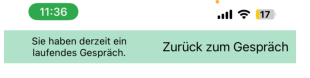 1 Tippen Sie in dem Bereich von Enreach Contact, in dem Sie sich gerade befinden, im grünen Banner auf Zurück zum Gespräch.