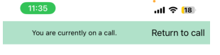 | For iPhone X and later, the green bar indicating an active call is displayed in the top-left corner of the screen. For older iPhone, it goes all the way across the status bar. |