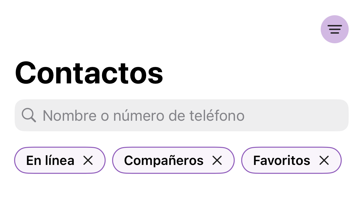 Encima de la lista de contactos, puedes ver qué filtros están seleccionados.
