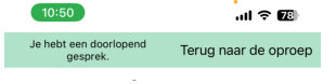 | Voor iPhone X en nieuwer wordt de groene balk die aangeeft dat er een actief gesprek is, weergegeven in de linkerbovenhoek van het scherm. Bij oudere iPhones gaat hij helemaal over de statusbalk. |